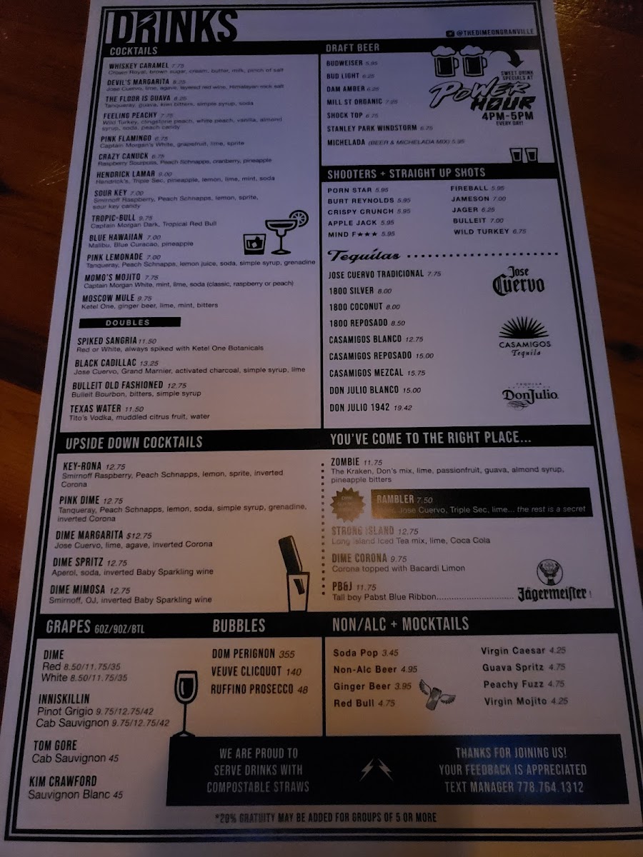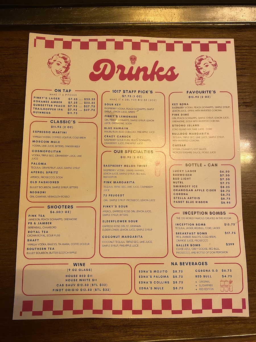 The menu at 1017 On Granville offers a variety of options suitable for casual dining at a bar and grill setting. It includes a range of starters, salads, handheld items, and drinks to accommodate different preferences and meal times.