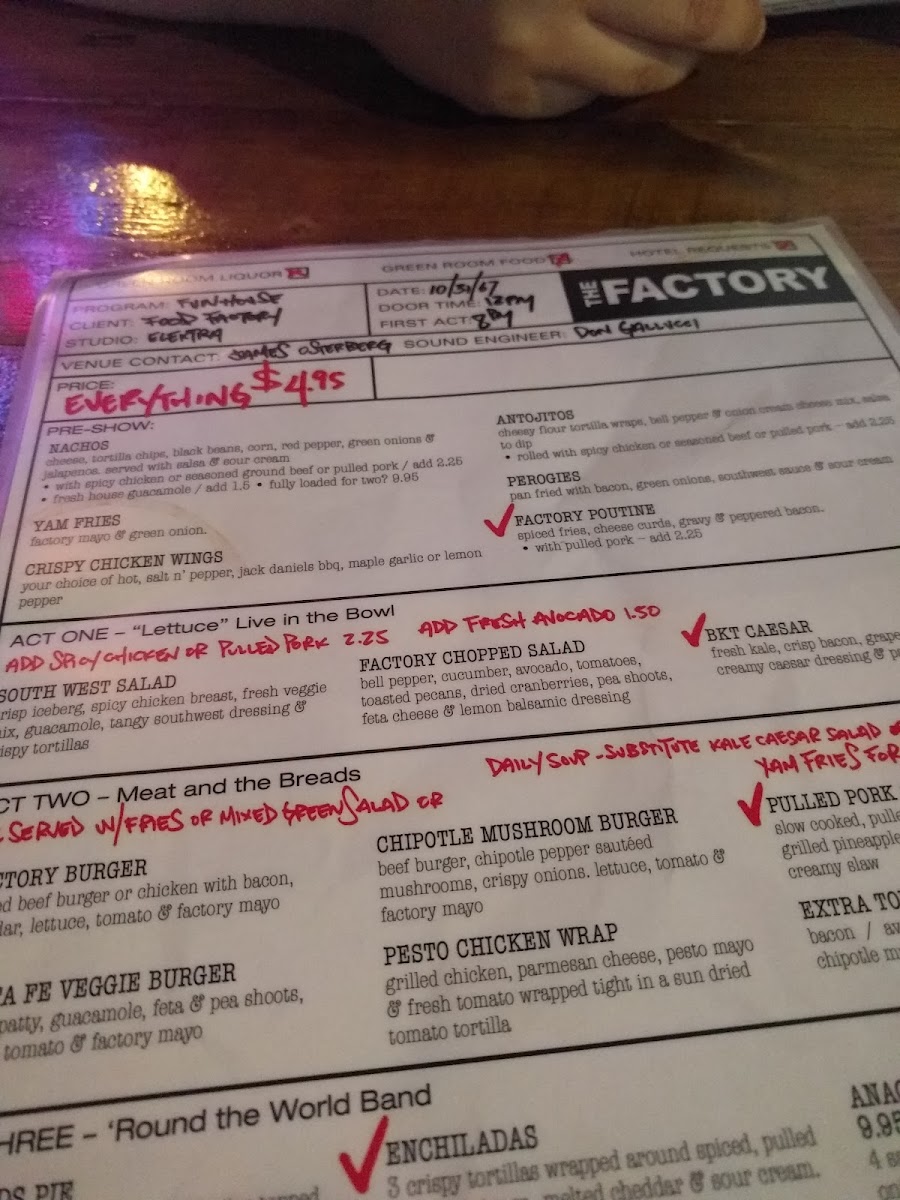 Handhelds offer convenient options such as the Chicken Quesadilla packed with Cajun chicken, cheese, and vegetables, along with an All Day Breakfast Sandwich featuring maple glazed bacon, fried egg, cheddar, and a hash brown on a buttered potato bun.